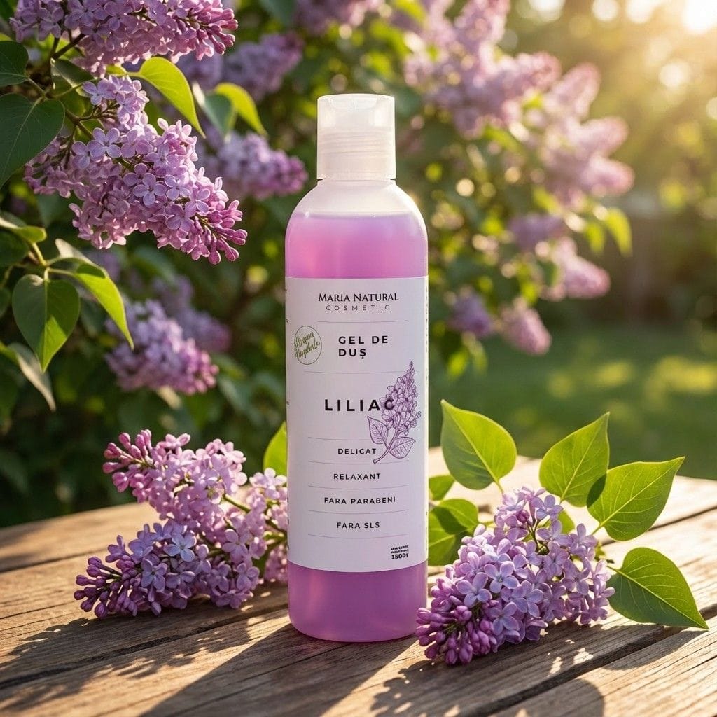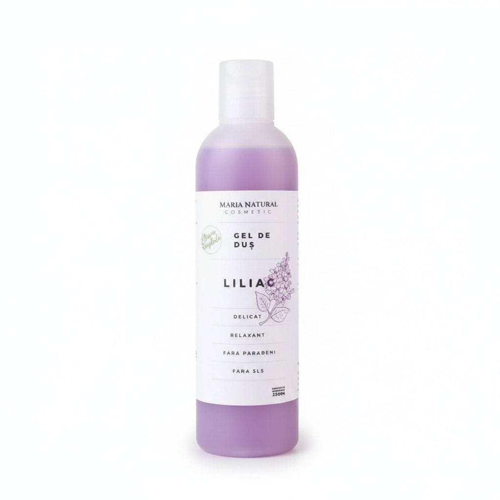 Gelul de duș natural cu liliac Maria Natural este potrivit pentru pielea sensibilă, pielea uscată și pielea predispusă la iritații. Fabricat artizanal în România din ingrediente de origine naturală.